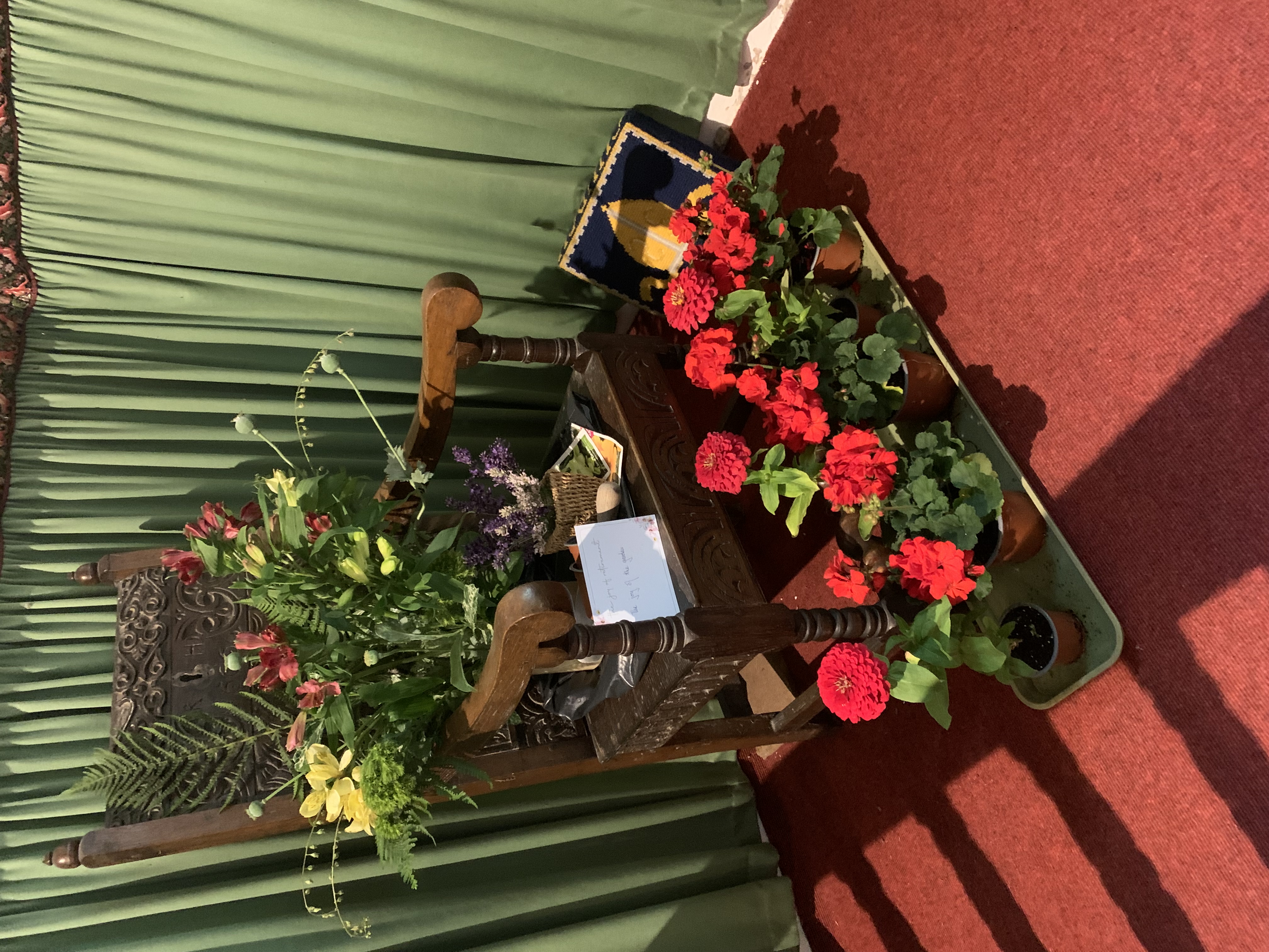with beautiful flower arrangements made by the local communitys.